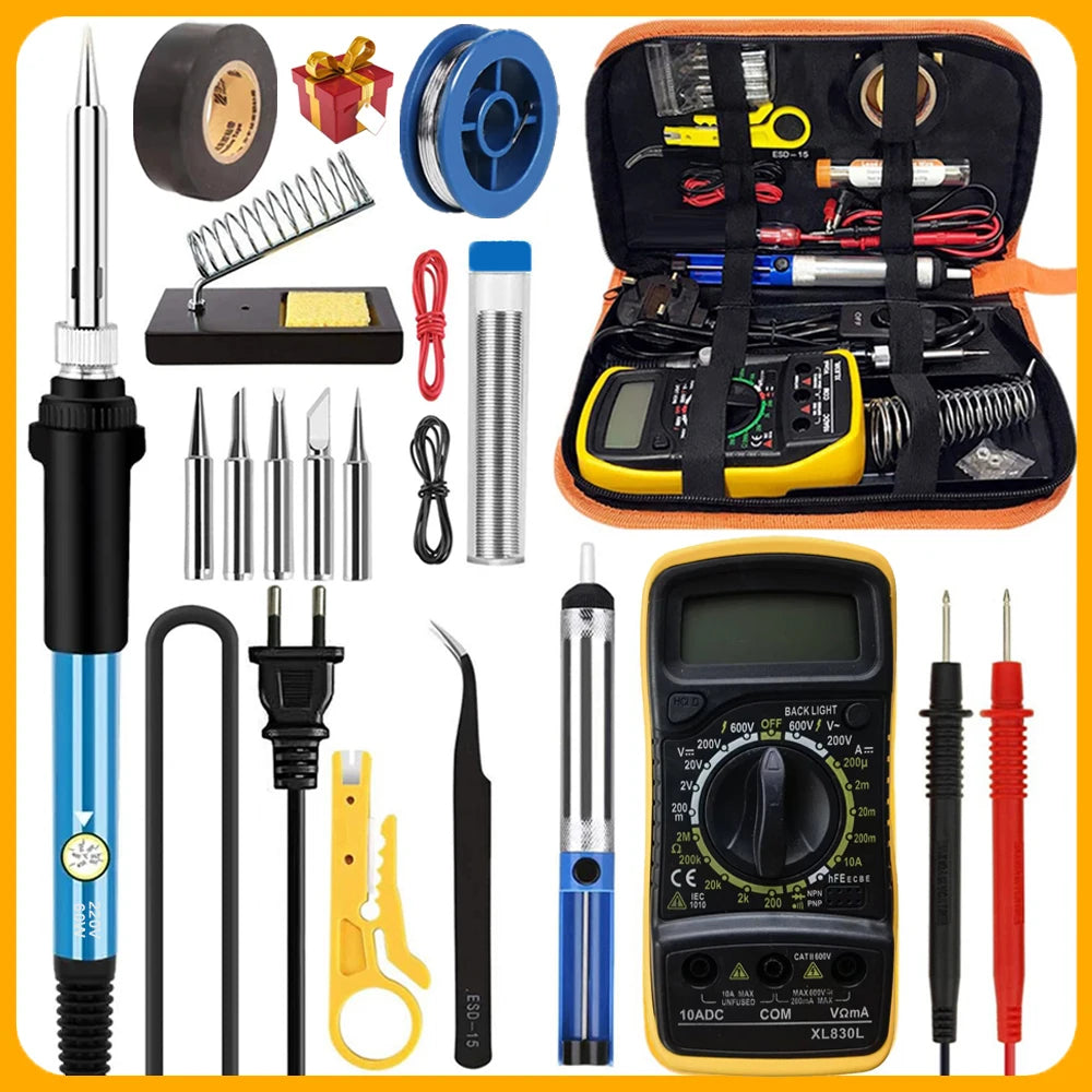 20-IN-1 Soldering Iron Kit Welding Tool, Soldering Kit with LCD Digital Multimeter, 60W Soldering Iron with 5 Extra Tips, Stand